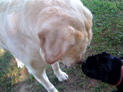 I’ll leave you guys with my favorite pic from yesterday. The big guy is Buckshot…my neighbor’s big old aging yellow lab. The pug, is of course my Ruby. Isn’t this a great shot?