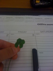 I’m also feeling rather lucky today because I was walking from my car to my office, looked down into a patch of clover (that I look at everyday) and what did I see?