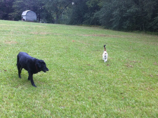 Hope y’all are having a good week. I’m trying to 🙂 I am meeting some friends for Happy Hour after work tonight. I’ve been told to expect lots of laughter. Good. I need it. Now for your gratuitous pet pic. Here’s a new pic of Trinity and Clementine. Or as we like to call them, Black Dog and White Dog.