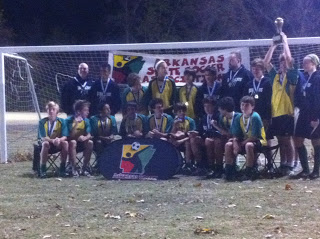 Holy crap, it was a busy weekend. Rader played in the Gold Division of the President’s Cup this weekend, and his team (The Deathcats) won the tournament! This means we are eligible to head to Greensboro, NC in June to represent Arkansas in the Regional tourney. How awesome is that? The last game was quite tough, as we had a very strict ref. He didn’t take no BS from anyone. So a player got ejected (well, he did throw a punch), Fishdog got ejected for yelling (after several warnings), a couple of parents got lectured and warned and a few more players were also sternly warned. And the game looked more like a rugby match than soccer. Lots of hitting, tripping, cursing, a few punches thrown (not even kidding) and mouthing off by parents and players alike. Fun times.<–NOT
