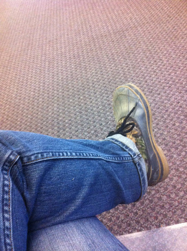 To these boots today. Hmmm. Can you wear fishnets with duck boots?