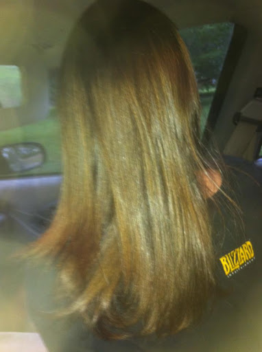 I asked him today if he was going to wait until school starts to cut it (they are required to have their hair off the collar, above the ears, and above the eyebrows at Catholic). Rader said he might get it cut the last week of school just to freak out all his friends. Heh. No matter when he cuts it, he definitely has enough to make a sizable Locks of Love donation.