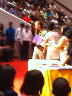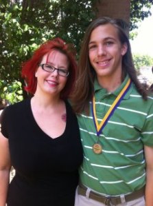 Well, sorta. School is definitely out for Ian, but Rader has 3 more days. We had his Convocation today…and I would like to proudly announce he received the Presidential Scholar Award for maintaining a 3.5 or higher GPA throughout 6th, 7th & 8th grades. this is the only pic I could get that was worth a damn.