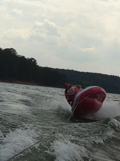 Went to Degray with Robyn and her brother and the kids and the dogs. Robyn and I decided to act like kids and ride the water toy behind the boat. This did not end well, but it was extremely fun.
