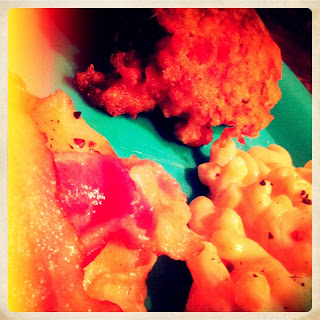We had homemade Mac and Cheese, bacon-wrapped Talapia, and stuffed crab shells. OMG. So freaking good. (FYI, the stuffed crab shells were from the seafood deli in Kroger. On sale for $1.00 each with Kroger card. It was a damn good deal and mighty tasty.) It was the only thing on our plate that I didn’t fix last night. Now Jefe knows why I love watching cooking shows like Top Chef so much. I get ideas and then I CREATE! Cooking…it’s food science!