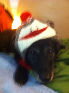 El Jefe wins bonus points and a cookie! Oh yes. I love my sock monkey hat. I will wear it and you will love me in it.